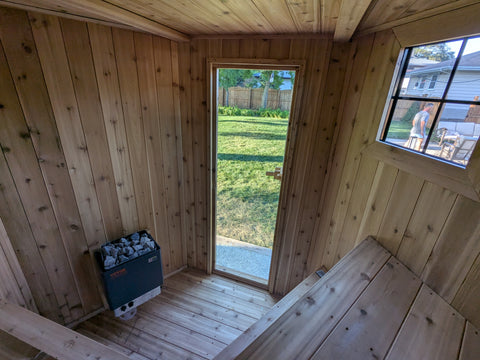 Interior: Tongue-and-groove western red cedar for warmth, aroma, and moisture resistance